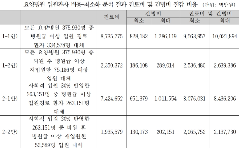 - 장기 이용 우대: 180일을 초과하여 장기 이용할 경우 매월 본인부담률이 10%p씩 인상되던 페널티가 **'3개월마다 10%p 인상'**으로 완화되어 장기 입원 환자의 부담이 줄었습니다.