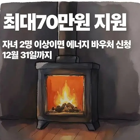 19세 미만 2자녀 가구 에너지바우처 신규 대상 포함 및 연 70만 원 수령법